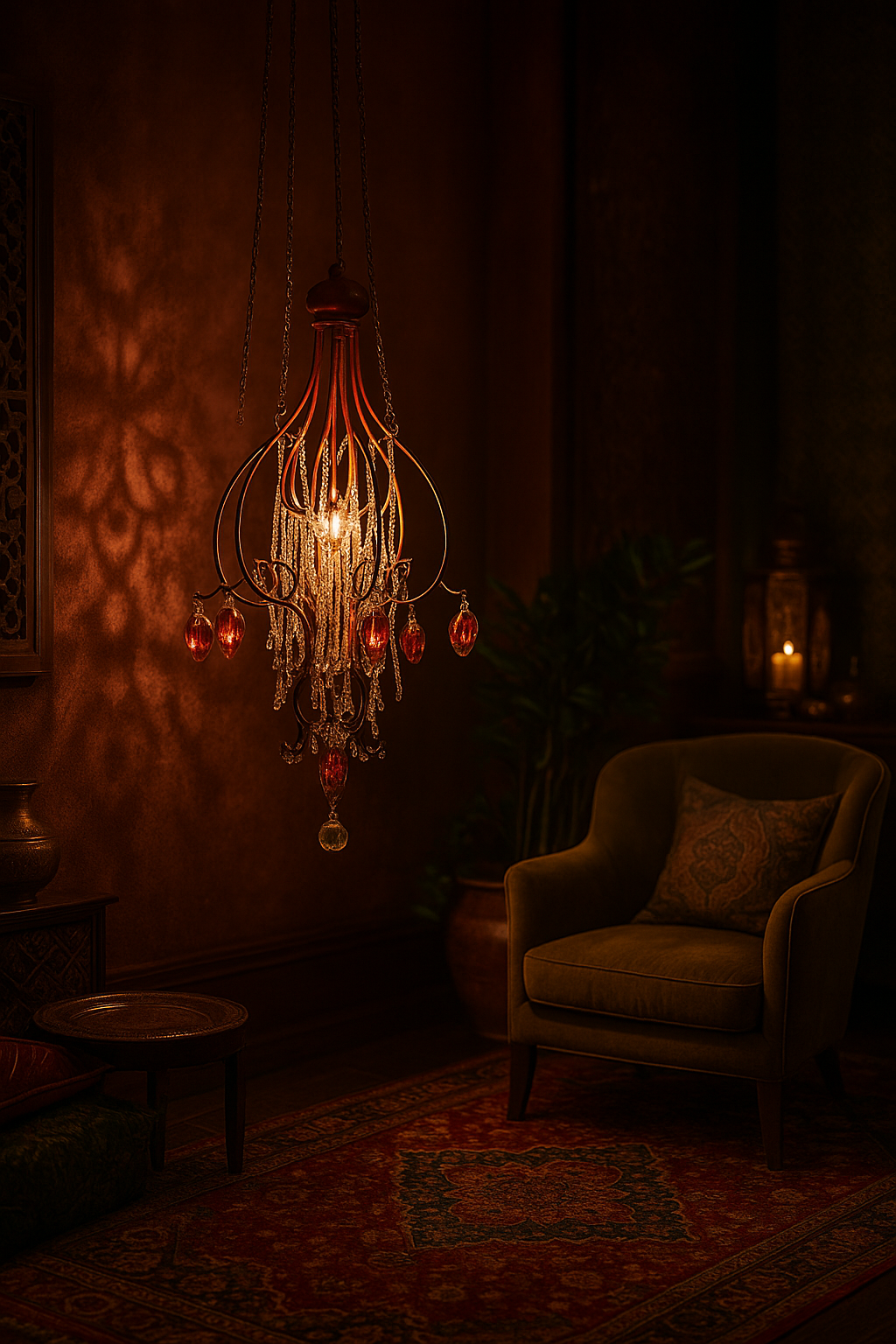 Подвесной светильник из изящного натурального алебастра, с арматурой бронзового цвета и стеклянными вставками. Сочетание элементов создаёт необычное рассеивание света. Высота светильника может регулироваться.