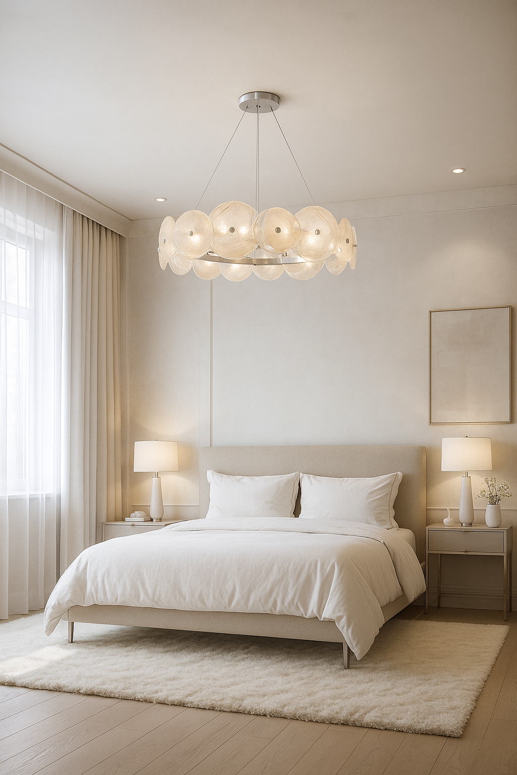 Тонкий контурный подвес тольщиной всего 15 мм. Внутри установлена диодная линейка, засвечивающая светильник равномерно по всему диаметру. Рассеиватель из силикона обеспечивает мягкое свечение. Тросы подвеса регулируются независимо друг от друга, что позволяет создать интересные графические эффекты, установив контуры под углом (с помощью разной длины троса в узлах креплений). В серии представлены одиночные, двойные и тройные круги различного диаметра. Корпус изготовлен низ алюминия, окрашен в белый или черный цвет. Источник питания в комплекте.
