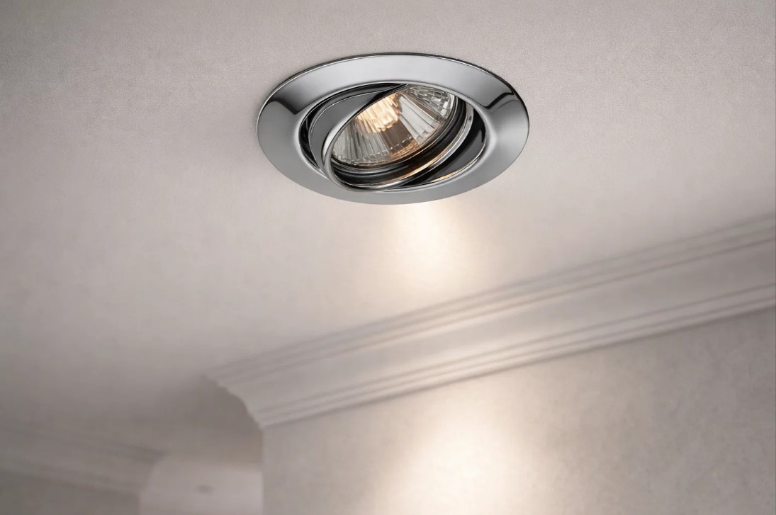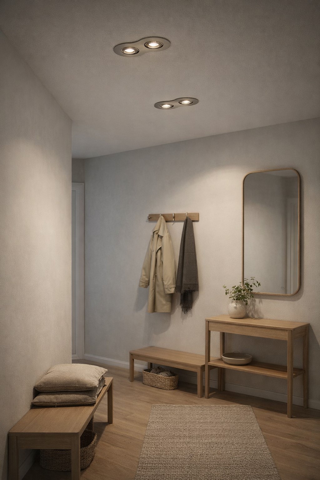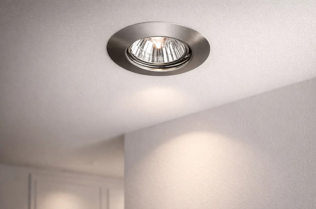 Встраеваемый настенный светильник, круглой формы, с точечным направленным светом. Идеально подходит для освещения ступеней. Цвет корпуса: "брашированный никель"