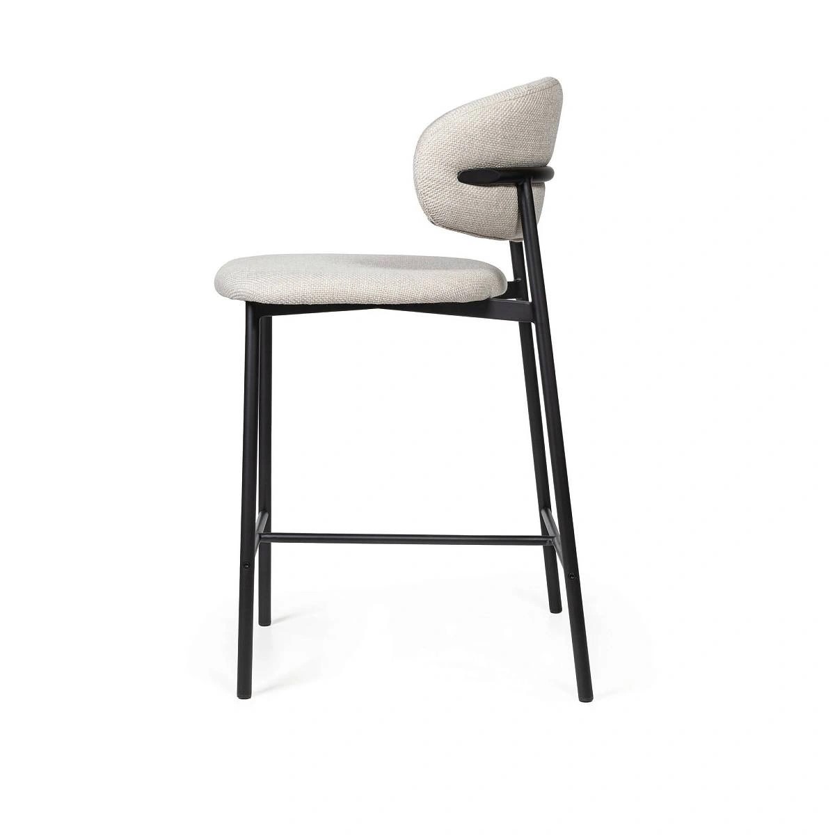 Полубарный стул, плетенный из синтетического шнура. Алюминиевый каркас с порошковым покрытием. Сидение обтянуто технической тканью VAR#TEX. Спинка украшена синтетическим шнуром VAR#TEX. Представлен в сером цвете. Все материалы прекрасно отводят влагу, что делает изделие подходящим для использования на открытом воздухе.