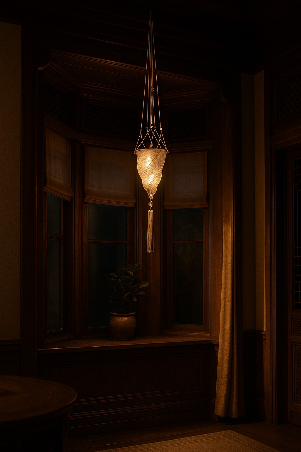 Подвесной светильник из изящного натурального алебастра, с арматурой бронзового цвета и стеклянными вставками. Сочетание элементов создаёт необычное рассеивание света. Высота светильника может регулироваться.